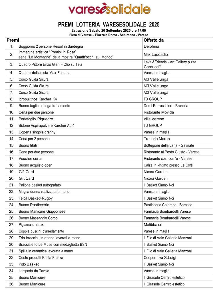 LOTTERIA DI VARESE PER LA SOLIDARIETA Edizione 2025 Condividi: Condividi su X (Si apre in una nuova finestra) X Condividi su Facebook (Si apre in una nuova finestra) Facebook Mi piace Caricamento...